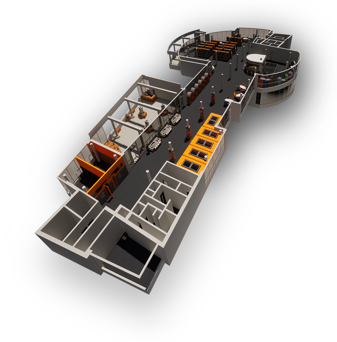 The aim of this concept was to transform the so-called Music Floor of the Central Library into an interactive space where visitors may socialize, relax, and study. The proposed design was conceptualized through 3D renderings following the original building plans by American architect Richard Meier.